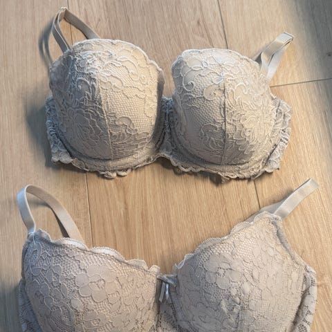 Myynnissä kahdet rintaliivit, joissa molemmissa irrotettavat olkaimet.