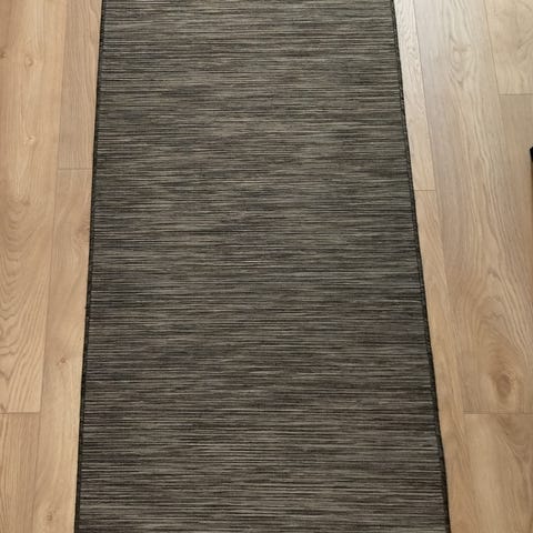 IKEA matto, harmaa väri, kudottu rakenne.