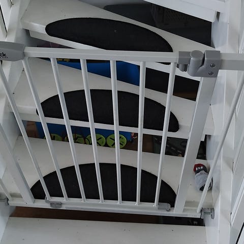 Hauck turvaportti . Soveltuu tilojen eristämiseen ja turvallisuuden lisäämiseen kotona, esimerkiksi portaiden tai huoneiden oviaukkojen kohdalla.