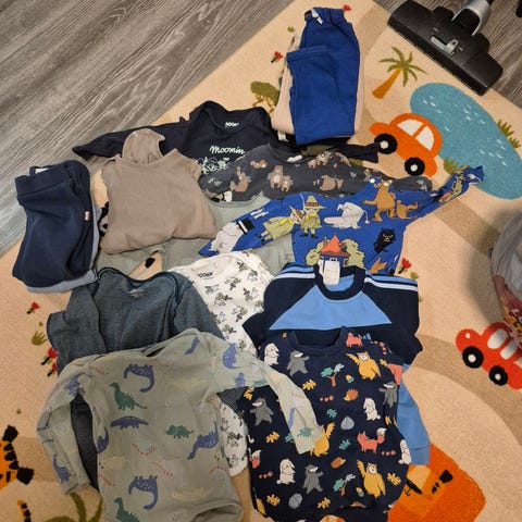Myydään vaatepaketti kokoa 86. Lindexin uutta vastaava kuratakki, punainen softshell-haalari, Lindexin tähti-vktakki, Polarn o. Pyretin wind fleece -takki. Haalarimallin uv-uikkari lyhyillä lahkeilla ja hihoilla, yöpuku, kauluspaita, 3 lyhyt hihaista ja shortsipuku. 7 housut, 11 pitkähihaista bodya, sukkia, pari hellehattua ja pipoa.