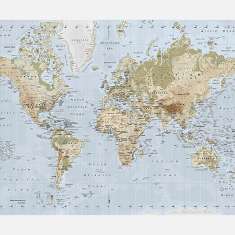 Myydään Euroopan kohokartta. Korkeuserot erottuvat kartan pinnalta kolmiulotteisesti.