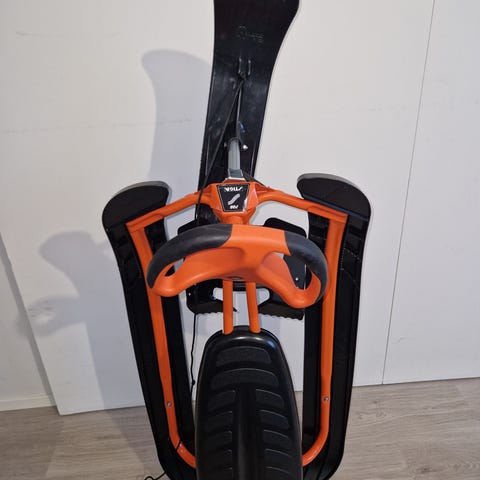 Yhdellä lapsella vähän aikaa käytössä ollut musta Stiga -rattikelkka. Ehjä ja toimiva.