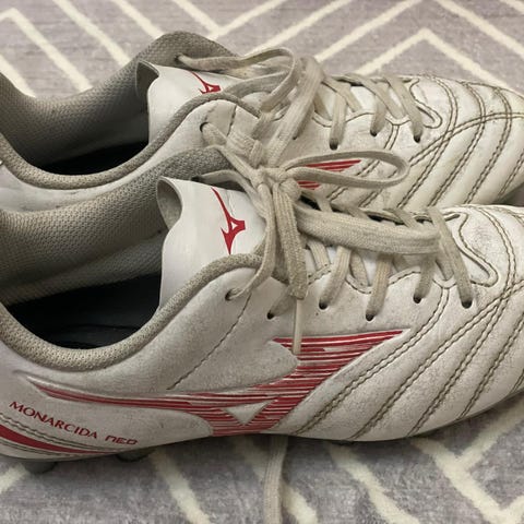 Myydään muutaman kerran käytetyt jalkapallokengät koko 38, todellisuudessa koko pienempi ehkä 37