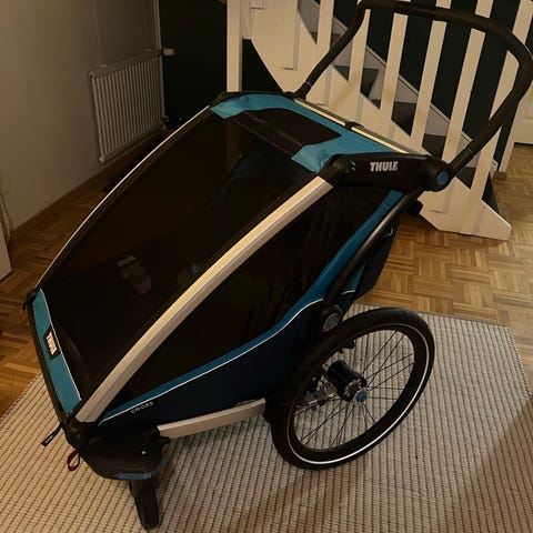 Thule tuplakärryihin juoksurengas, käytetty muutamia kertoja. Hyvä kunto. Haku Vaasasta.