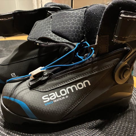 Salomon RS8X Prolink maastohiihtomonot mustassa ja sinisessä värissä. Monot on suunniteltu Prolink-sidoksille ja ne sopivat maastohiihtoon.