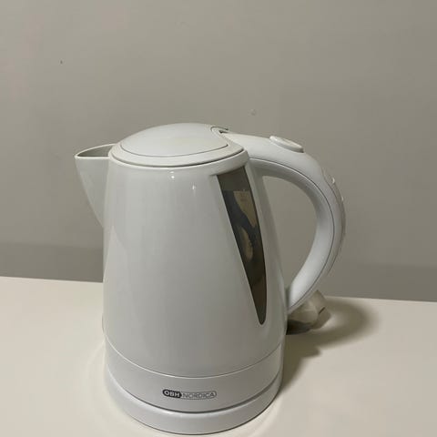 OBH Nordica vedenkeitin lasikannulla ja ruostumattomalla teräksellä. Siisti, käytetty ainoastaan veden keittämiseen.
