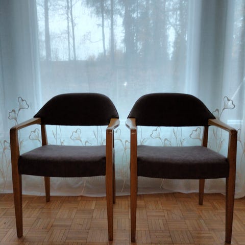 Hyväkuntoinen ja vähän käytössä ollut Askon nojatuoli. Oliivinvihreä verhoilu, tumman pyökin väriset massiivipuiset käsinojat ja jalat. Napakka istua, jouset ja täytteet kunnossa.