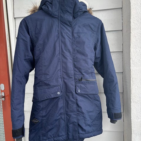 Myydään Didriksons Roger yt parkatakki lämpimällä karva/vanuvuorella. Koko 150cm, unisex malli. Vyöllä kiristysnauha. Väri tumman sininen.