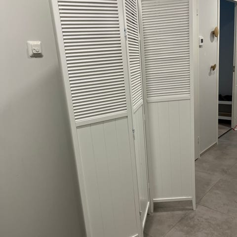 Ikean sermi/tilanjakaja. Kankaat pystyy vaihtamaan. Korkeus 140-160. Yhden palan leveys noin 45.