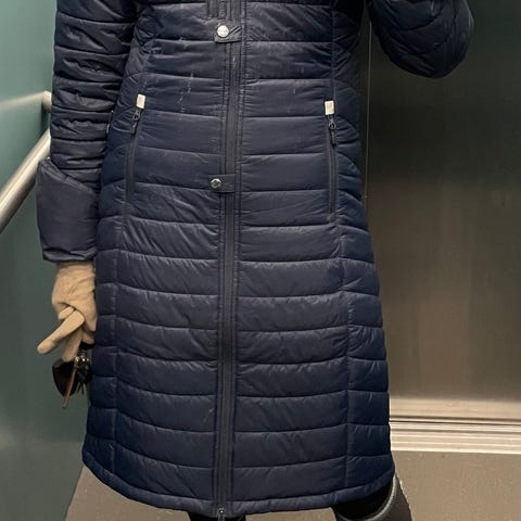 Uhip merkkinen lämmin talviratsastustakki. Koko 34. Käännettävät hihansuut, irroitettava huppu, lenksut jaloille ym. Kunto muutoin hyvä mutta takissa on takana halkion yläpuolella 2cm palje, ja halkiosta puuttuu yhden napin vastakappale.