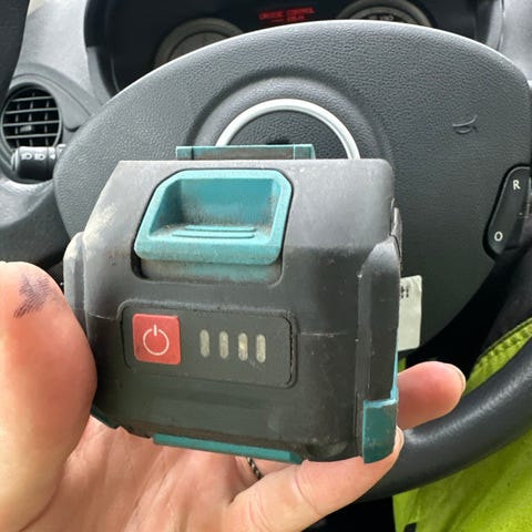 Hyvä esim sähköttömään mökkiin tai matkalaturiksi koska makitan akku on iso.