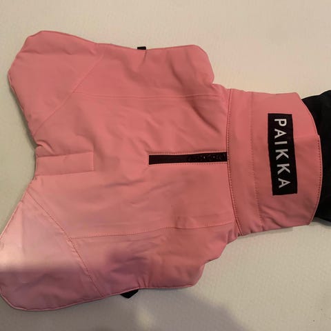 Muuten erittäin siistissä kunnossa, ainoa moite, että pentu ehti kerran puraista paidan reunaa, mistä jäi pienet reiät. Varmasti paikattavissa, kohtuun huomaamattomat, mutta reiät silti.