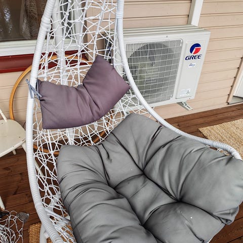 Comfortable, deep seat with removable light-colored cushion