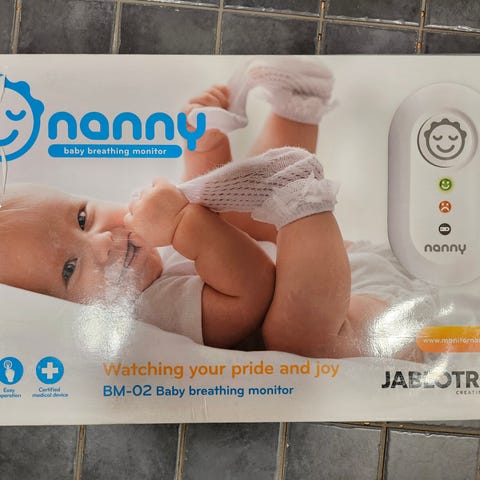 Nanny kätkythälytin, joka seuraa vauvan hengitystä. Laite hälyttää kuuluvasti jos vauvan hengitystiheys laskee liiaksi