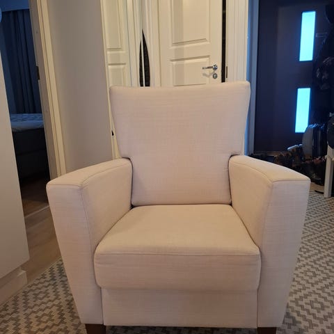 Hyväkuntoinen, siisti. Korkeus 100cm, istuinosan leveys 54cm ja istuinosan syvyys 51cm.