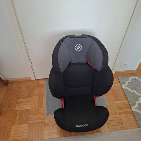 Cybex lasten turvaistuin harmaalla verhoilulla. Istuin on suunniteltu tarjoamaan turvallisuutta ja mukavuutta lapsille autossa.