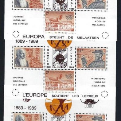Belgia - Lajitelma useista varastokirjoista ja albumilehdistä, joissa on