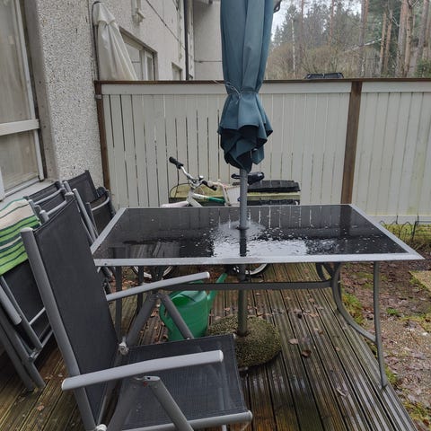 Uudenveroisessa kunnossa oleva IKEAn pieni ulkopöytä-setti. Sopii esimerkiksi parvekekäyttöön tai pieneen tilaan.