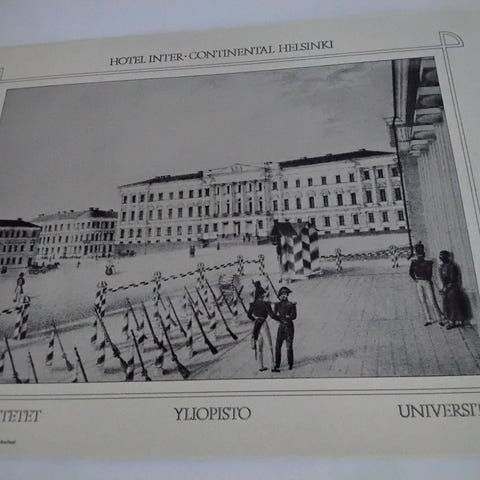 Hotelli Inter-Continentalin valmistama kuva Helsingin Valtioneuvoston Talo kivipiirros F.Tengström 1837