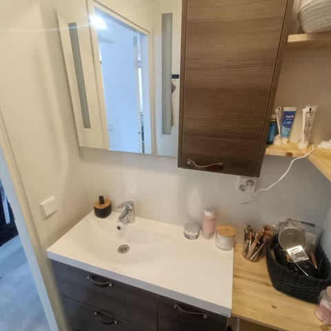 Vesihana ja bide kuuluu allaskaappiin mukaan.
