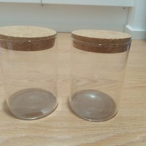 Neljä kpl kannellisia lasipurkkeja, korkeus 11 cm, sivuilla pienet sarvet, jotta ote pysyy, hillopurkeiksi tai maustepurkeiksi, 4 kpl kannettomia lasipurkkeja korkeus 8 cm. Myydään kaikki kerralla 0,50 snt kpl x 8 kpl = 4 euroa