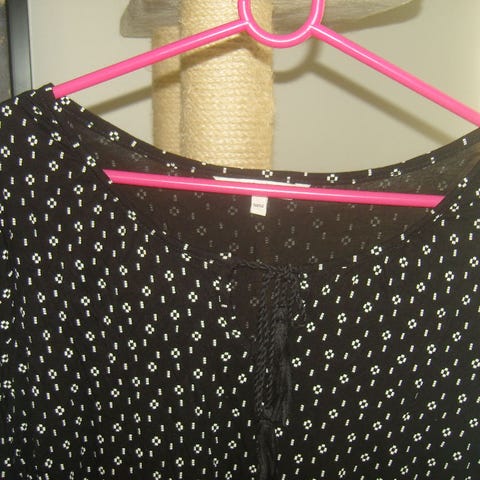 Paristi pidetty kaunis, kerroksellinen juhlapaita. Vartalo-osa vuorattu, hihat läpikuultavat. Kokolapun koko 54/56, mutta on parempi pienemmälle koolle, koska ei juurikaan jousta ja on nätimpi kun laskeutuu vapaasti. Kainalomitta 67cm, kokopituus n.79cm.