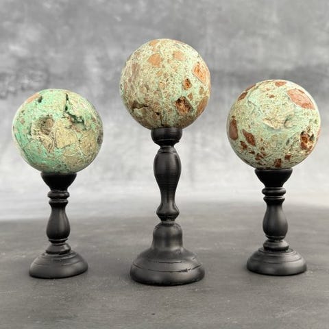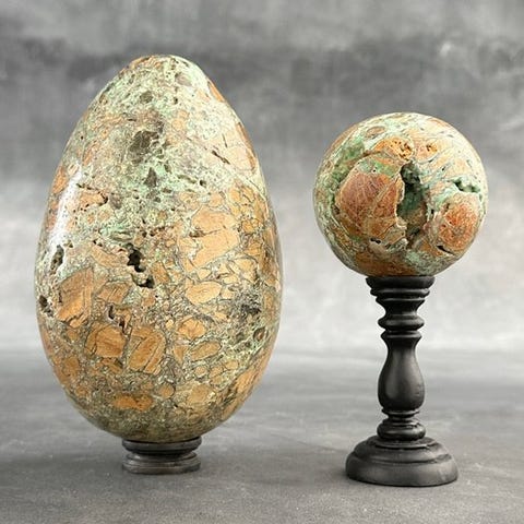 Upea pari Green Smithsonite -sydäntä, muotoiltu räätälöidyille telineille.Vihreä smithsoniitti, joka tunnetaan myös nimellä vihreä sinkkisavi, on mineraali, joka kuuluu karbonaatit mineraaliryhmään. Se on sekundäärinen mineraali, joka muodostuu primaaristen sinkkivarantojen rapautumisen ja hapettumisen seurauksena. Smithsoniitti esiintyy tyypillisesti eri väreissä, kuten vihreänä, sinisenä, vaaleanpunaisena, keltaisena ja ruskeana. Smithsoniitin vihreä väri johtuu usein kuparipitoisuuksista. Se on suhteellisen pehmeä mineraali, jolla on kovuus 4–4,5 Mohsin asteikolla, mikä tekee siitä naarmuuntuvia.Arviolta mitat, mukaan lukien jalustat.Sydän 1 --> Korkeus: 20 cm, Leveys: 18 cmHeart 2 --> Korkeus: 14,2 cm, Leveys: 11,5 cmVastuuvapautukset:Yksi tai useampi kuva esittää tyyliteltyä esinettä. Tarkat tiedot myytävästä esineestä löytyvät muista kuvista. Tyylitellyssä kuvassa olevat esineet eivät sisälly myyntiin.Paino, joka mainitaan, sisältää pakkausmateriaalin.LähetysKohde lähetetään seurantanumerolla DHL Parcelin, DPD:n tai postNlin kautta. Seuranta päivittyy Catawiki-luettelossasi, kun pakettisi on jätetty postiin.Ole hyvä ja tarkista säännöllisesti välttääksesi pakettisi palautumisen meille, jolloin ostaja vastaa toisen lähetyksen toimituskuluista.Seurantaan Espanjaan ja Portugaliin käytä tätä linkkiä ja lisää Catawiki-erästäsi saatu seurantanumero.https://clientesparcel.dhl.es/LiveTracking/HomeME EMME YHDISTÄ TOIMITUKSIA!!!Jos sinulla on kysyttävää paketistasi, ota meihin yhteyttä Catawiki-viestipalvelun kautta. Pyrimme vastaamaan kolmessa työpäivässä.