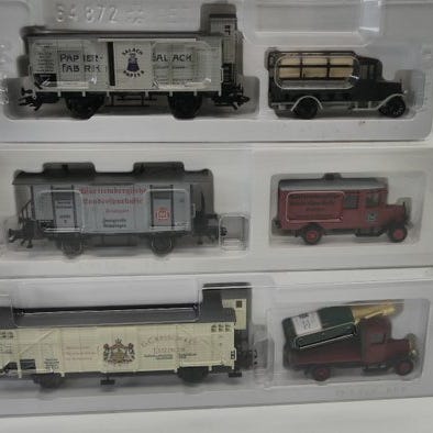 Roco 45959 Tavaravaunujen sarja.Rajoitettu sarja vuodelta 2006, koostuu kolmesta Hbis-w-tavaravaunusta Nederlandse Spoorwegeniltä, väriltään ruskea. Jokaisella vaunulla on oma rekisterinumero. Kyseessä ovat rekisterinumero: 225 0 023-9, 225 0 120-3 jaAlkuperäiset vaunut ovat STIBANSin omistuksessa (Stichting tot behoud van af te voeren NS materieel) ja säilyvät näin jälkipolville. Jokaisella vaunulla on oma pakkaus, ja koko paketti on jälleen pakattu läpinäkyvään ulkopuoliseen laatikkoon.Uusi alkuperäisessä pakkauksessa.Valokuvat ovat osa kuvausta.Artikkelit lähetetään ammattimaisesti ja vahingoittumattomasti.Noudettaessa (Purmerendissä) allekirjoitat vastaanottotodistuksen.Onnea huutokauppaan!