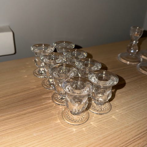 valmistettu lasista. Pakkaus sisältää viisi erikokoista kynttilänjalkaa, jotka soveltuvat koristekäyttöön. Väri kirkas, materiaali lasi.