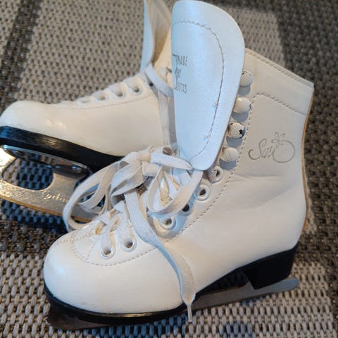 Zebra lasten luistimet, koko 27. Valmistettu nahasta, väri valkoinen. Soveltuvat muuhun luisteluun. Kulumaa on mutta terät hyvät, on teroitettu.