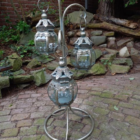 Hieno koristeellinen lyhty metallista ja lasista.