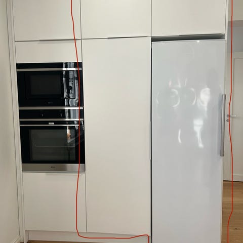 Uudenveroinen siivouskaappi, Cora keittiöiden tekemä, sisällä teline mopeille tms, ollut kiinni seinässä sivulta, mukana kaksi kromista jalkaa. Laadukas kaappi 3 vuotta vanha.