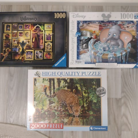 Tästäpä säkillinen palapelejä seuraavalle. Mm. Pipsa Possu, Muumit, Koiramäki, Nalle Puh