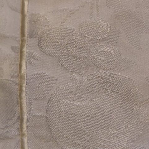 Kesäjuhliin valmiiksi pestyt ja mankeloidut pitkät, hieman hennon persikkaan vivahtavat, pöytäliinaa. 5kpl.
