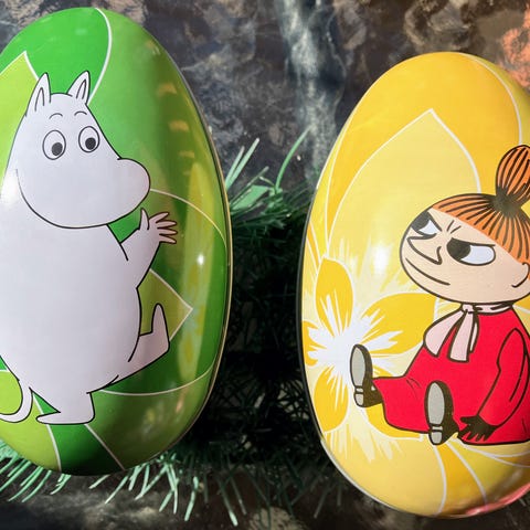 Hakusanoja: pääsiäismuna pääsiäismunat pääsiäismunia koristemuna koristemunat koristemunia avattava avattavat säilytysrasia säilytysrasiat säilytysrasioita purkki peltipurkki metallipurkki säilytyspurkki keräilypurkki muumipurkki muumi muumit pikku myy muumipappa muumimamma muumipeikko niiskuneiti peltimuna pelti metallimuna metalli sisustus sisustustavara sisustustavaroita sisustustavarat koriste-esine koriste-esineitä koriste keräily pääsiäinen pääsiäiskoriste pääsiäiskoristeet pääsiäiskoristeita muumikoriste