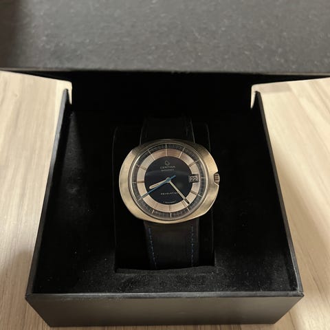Todella siistissä kunnossa. Hieno taulu, sinisellä sekuntiviisarilla. Mukaan Certinan oma metalliranneke. Kysymällä lisää tietoa.