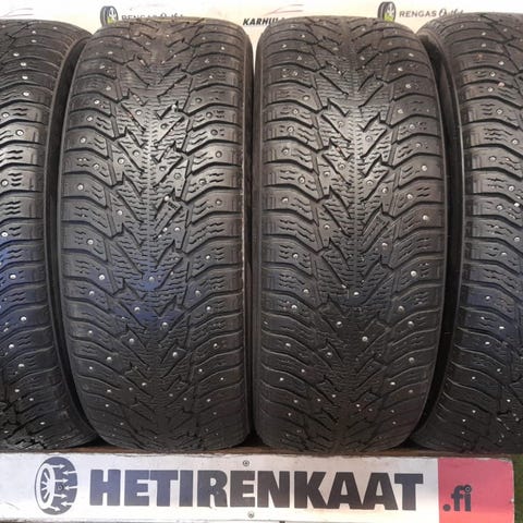 Kuluneet nastarenkaat vanteilla. Nastoja poikki ja irtonnut paljon. Ollut Toyota avensiksessa.