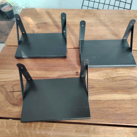 Sininen ja valkoinen metalli kehyksiset hyllyt.
