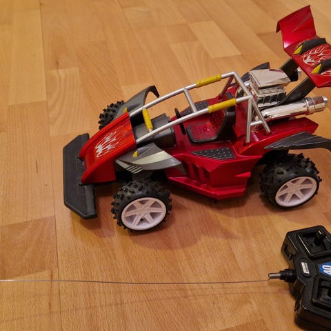 Radio-ohjattava auto. Huippunopeus 40km/h. Akku ei toimi, DeWaltin akku sopii.