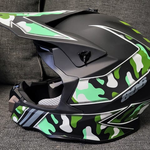 HJC crossikypärä mustalla ja punaisella värityksellä.