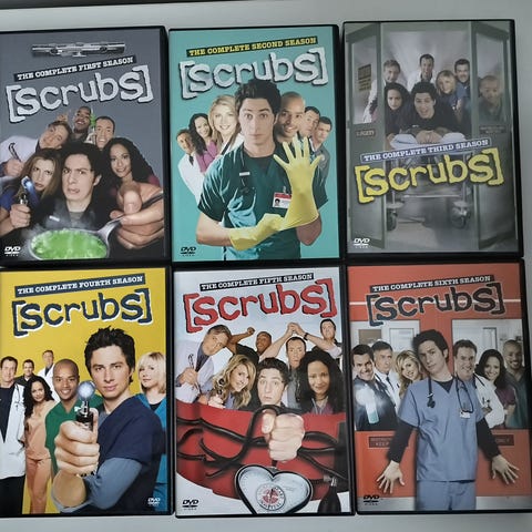 Myydään Scrubs sarjan kaikki kaudet. Levyjä ei ole katsottu mutta ulkopakkauksessa jäljet. Yhteensä 20€.