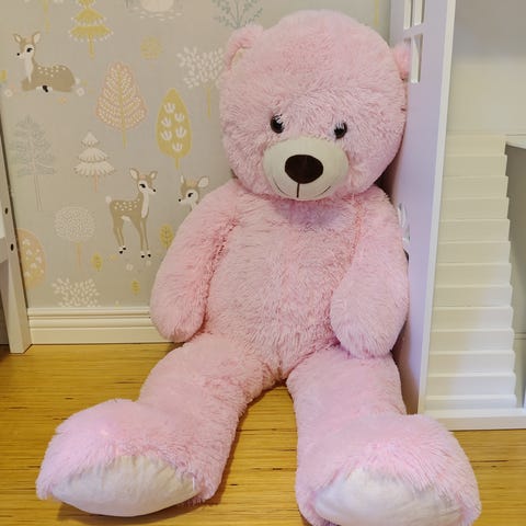 Iso ruskea nallepehmolelu. Ollut vain koristeena tai säilytyksessä.