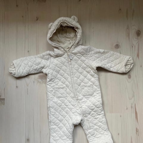 Newbien vanuhaalari pienelle vauvalle. Koko 56. Puuvillainen päällinen ja vanutäyte, hyvä talviseen vaunutteluun. :) Käännettävät hihat ja jalansuut.