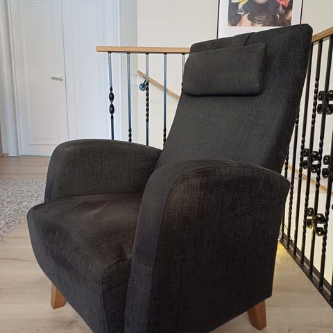 Tummanruskea nojatuoli. Vain nouto ja käteismaksu.