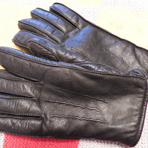 Nahkaiset mustat hanskat, koko L. Hanskat on valmistettu nahasta ja ne on suunniteltu miehille.