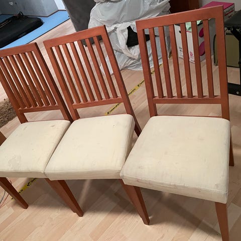Annetaan 5kpl Sotkan Roxy-tuoleja. Jokaisessa tuolissa kulumaa.