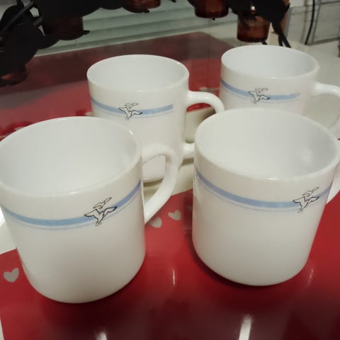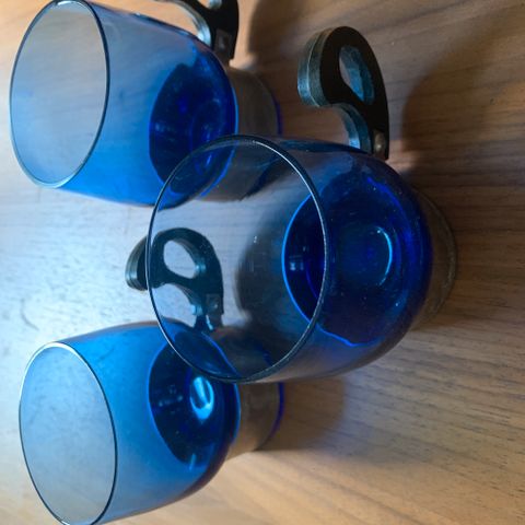 Kevyttä lasia, miellyttävä ohut suutuntuma. 2 vaaleanpunaista, 1 vaaleansininen, 1 vaaleanvihreä. Jotkut ovat uusia, joitakin käytetty kerran. Korkeus/halkaisija noin 8/10 cm.
