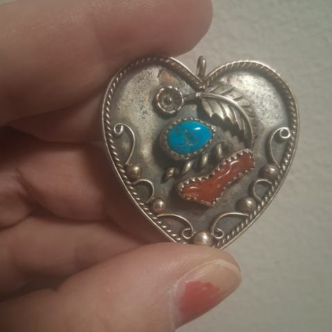 Hopeinen iso Navajo intiaani riipus turkoosilla kivellä. Kivessä aivan pieni klommo.