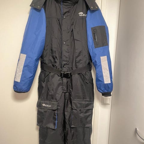 Musta, oranssit nauhasomisteet , kaksisuuntainen vetoketju edessä, tarralliset sivutaskut . Painonapilliset etu - ja takatasku.