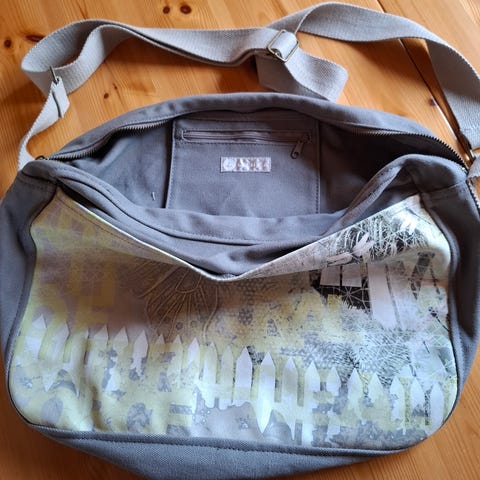 Hyvin kaunis laukku kirjottune kukkasineen. 3 vetoketju osastoa.